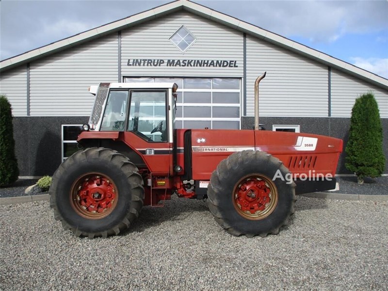 International 3588 2+2 Amerikaner prærie traktor. I bag er der 3 dobbeltvirkende fjernudtag. På kabinen er der 4 arbejdslygter bagud samt 2 fremad. Sjov gammel knækstyret traktor med en 7,6L motor med 177HK. Vi tager meget gerne dine brugte traktorer i bytte og Køb-Salg-Bytte-Udlejning