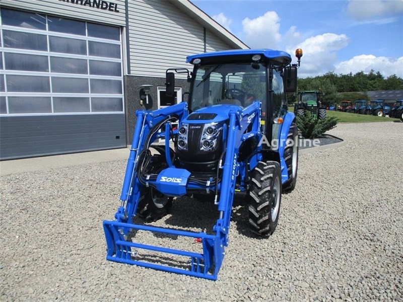 Solis 50 HK traktor med 3 cylindret stage V diesel motor og kabine. Den har en egenvægt på 2870kg og kan løfte 2500kg i liften i bag