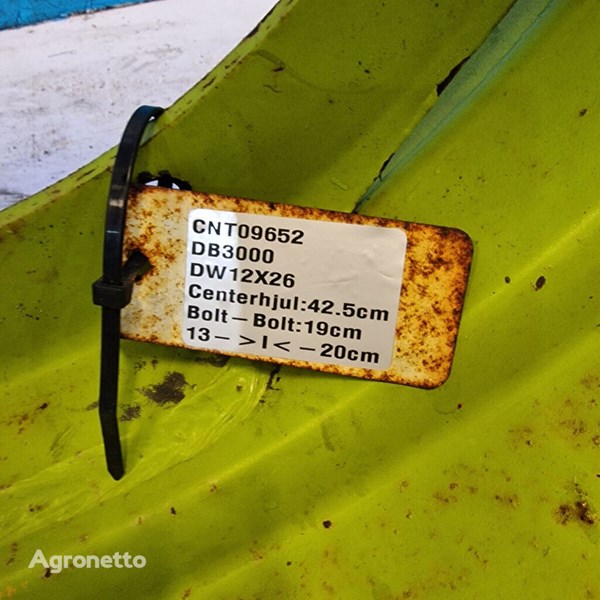 Fælget har siddet på en Dronningborg D3000. Fælg i størrelsen DW12x26. Center hul er 42.5cm. Afstand fra bolt til bolt: 19cm. Indpresningen er 13cm til den ene side og 20cm til den anden side
