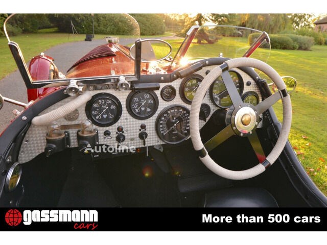 The basis for the car is a Bentley R type chassis from 1953. The chassis is clad with a muscular aluminium body with bulges louvres & air scoops wherever you look. Accommodation is for two on black leather Bentley style bucket seats. The dash is of machine turned aluminium & contains the usual quotient of instruments including a large rev counter & 170mph calibrated speedometer
