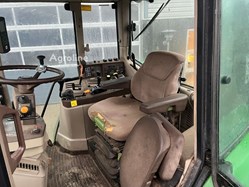 John Deere 6820 med frontlæsser der er registreret første gang den 27/03-2002 og vi har den originale registreringsattest til den. I bag er der 4 dobbeltvirkende fjernudtag