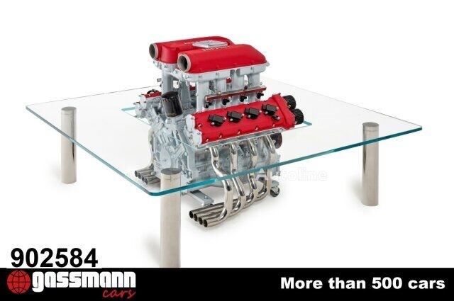 supported by 4 polished stainless-steel legs. Glass signed Gervadino Design as well as the Ferrari 360 engine numbered 360-03. External dimensions 140 x 140 cm
