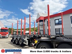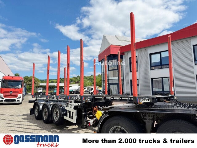 Aufbau: 3-Achs Holztransportauflieger mit 6x Exte Schemeln und Teleskopfunktion 9,4m bis 12,9m