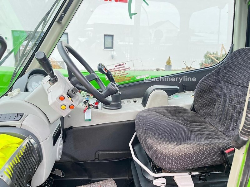 mit Palettengabel und Schaufel, hydraulische Schnellkupplung der Anbaugeräte mit Tac-Lock-Verriegelungssystem, gefederte Kabine, Hydrostatischer 2-Gang-Fahrantrieb Eco Power Drive, elektronische Motordrehzahlsteuerung, Joystick mit integrierter Anhebung der Motordrehzahl, 400 mm Bodenfreiheit, Vorradlenkung, Rundlenkung, Hundegang, Load-Sensing Hydraulikpumpe, Fahrrichtungschalter am Lenkrad, Rahmen mit Niveauausgleich