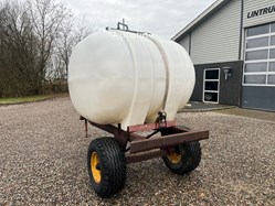 Vandvogn der er lavet med en 5000 liters plasttank der er sat på et stel fra en tipvogn