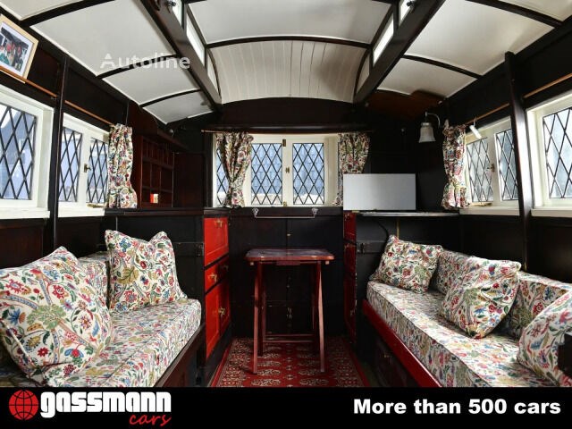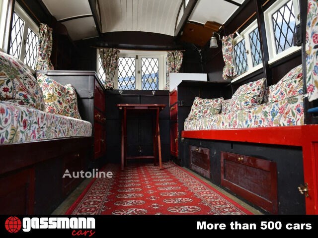 inspiriert von der englischen Tudor-Architektur. Charakteristische Details wie das elegante Laternen-Dach sowie die markanten Erkerfenster verleihen diesem Wohnwagen eine außergewöhnliche Präsenz. Ein Exemplar dieses Modells befindet sich heute im renommierten National Motor Museum in Beaulieu ein eindrucksvoller Beleg für seine historische Bedeutung