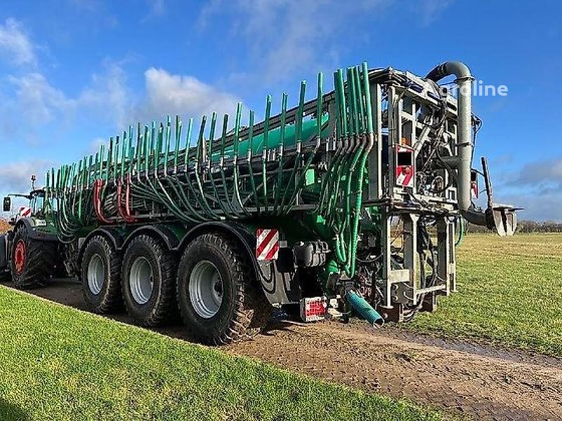 Bereifung (v): 800/60R32, Bordcomputer / Monitor, Druckluftbremse, Gezogen, Schleppschläuche, Tridem-Achse, Zentralschmierung, ISOBUS ________ Wienhoff Tridem Güllefass Baujahr 2012 und Vogelsang SwingMax 30 Baujahr 2015 Wienhoff Güllefass Tridem 30.000l: - feuerverzinkter Behälter mit6 mm Stärke - 2,10 m Tankdurchmesser und 8,25 m Tanklänge - 3 Schwallbleche und Auslaufvertiefung - Tank und Rahmen bilden eine feste Einheit - 2 Lenkachsen 1+3 mit hydraulischer Kabelzwangslenkung - 150er luftgefederte BPW-Achsen mit 410x180er Bremstrommeln - K80 Anhängung mit einer möglichen Stützlast von 4,0t - Hydro-pneumatische Federung der Deichsel - Hydraulischer Stützfuß an der Deichsel - Bereifung: 800/60 R32 - große Radkästen über der 1,2 und 3 Achse - Effektivvolumen: ca. 29,1 m³ - 2-KreisDruckluftbremse - Kunststoff-SA-Einzelradabdeckung - Unterfahrschutz mit LKW-Beleuchtung und 40 km/h TÜV-Gutachten - 14.400l/min B&P Kompressor mit automatischer Schmierung und 1000 1/min Eingangsdrehzahl - Hydraulische Kompressorverstellung zum umstellen von saugen und drücken - 8' Vogelsang Beschleuniger am Saugarm - Ansaugstutzen vorne links 6 und 8 Zoll mit 6 und 8Zoll hydraulischem Schieber - Auslaufvertiefung - Füllstandsanzeige vorne mit Schwimmer - zusätzlich mit großem Sichtfenster oben - Exaktverteiler mit Spritzschutz - 1 Garda-System (Typ Garda Turbo 9000): Kombination aus Kreiselpumpe Garda mit wassergekühltem Kompressor zum saugen und ausbringen - Ausbringen ohne Kompressor möglich - 8 Zoll Saugarm (220 mm) hydraulisch doppelwirkend doppelt angelenkt incl. Ansaugturbine oben im Kopf - Vorbereitung für den Stickstoffsensor - 1. Achse anliftbar zur kurzzeitigen Erhöhung der Stützlast - pneumatische Flüssigkeitsverschiebung im Tank zur Übertragung der Stützlast - Topzylinder-System vor an der Deichsel mit 4xStickstoffspeicher und DBV Ventil (einstellbar) - Vorbereitung für die Reifendruckregelanlage, Achsen vorgebohrt + Halterung am Tank - Vierpunkthydraulik im Heck - Rückfahrkamera (Anzeige im CAN-BUS-Terminal) - Zentralschmieranlage für ca. 55 Schmierstellen (Achsaggregat + Deichsel) - Zentralschmieranlage auch für das Schleppschlauchsystem - 10'Schlauchwanne unter dem Tank - Tank mit 2-K-Lackierung in grün - Lichtpaket: Arbeitsscheinwerfer LED links/rechts am Tank - Rundumleuchte + Zusatzbeleuchtung hinten - Elektro-hydraulische Komfortbedienung: (für das LS-Hydrauliksystem) Vogelsang SwingMax 30: - Arbeitsbreiten 30m, 27m 24m und 21m - 2x Vogelsang ECL Verteilerköpfe - Schlauchabstand 30cm - CFC-Teilbreitenschaltung - Baujahr 2015 - mit Prallteller - Hangausgleich Pokaż cały komentarz typ:: rozsiewacz nawozów płynnych pojemność:: 30 m³ całkowita masa:: 34 000 kg lokalizacja:: Niemcy Kunde numer w ofercie dealera:: 20843-457769810036 data zamieszczenia:: 31 mar 2026
