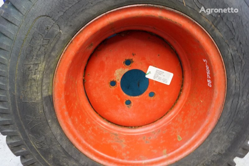 Eng: Used wheel in size 12.5/80-18. The brand is Goodyear. It is with 8 PLY. It has been on a Dronningborg D7500. Center hole is 11cm. Distance from bolt to bolt: 10.5cm. The pressing in is 13cm to one side and 16cm to the other side. Call 97375277 or send an email to pokaż kontakty for price or more info