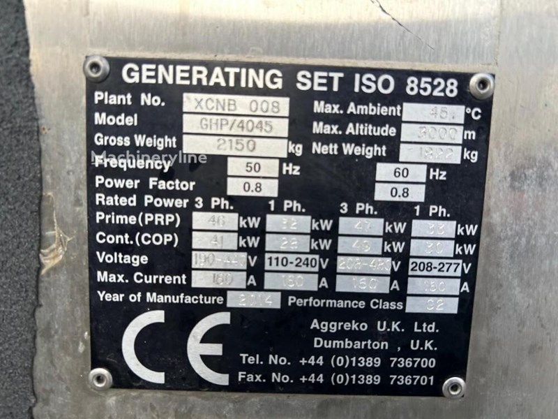 Aggreko GHP/4045 60KvA Diesel Generator in good working condition.